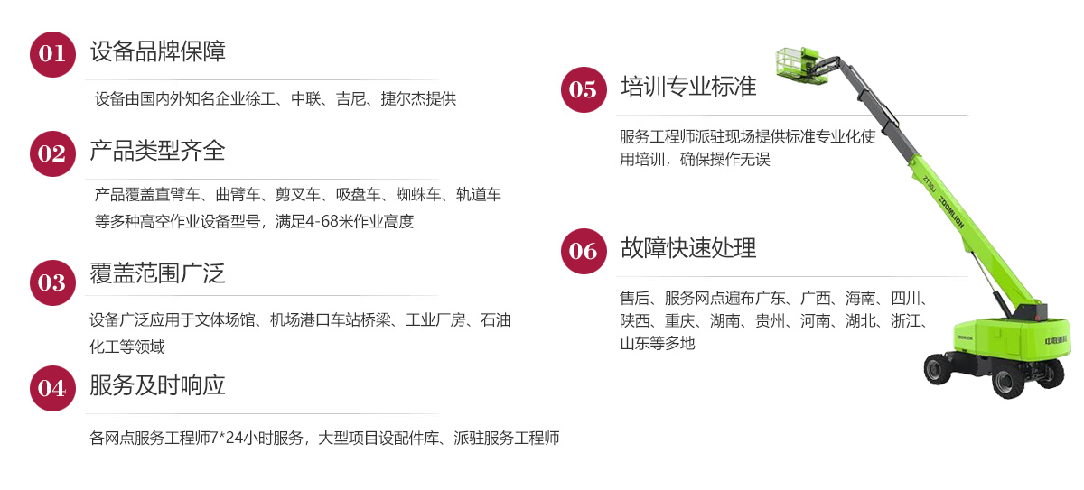 公司在發(fā)展歷程中堅(jiān)定實(shí)行大客戶戰(zhàn)略,致力于以優(yōu)質(zhì)的服務(wù)打造公司的品牌和核心競爭力,現(xiàn)已在廣東、廣西、海南、四川、陜西、湖南、重慶、河南、湖北、貴州等多地建立了完善的售后服務(wù)網(wǎng)點(diǎn),24小時(shí)為客戶排憂解難。今后我們將結(jié)合市場需求,不斷創(chuàng)新業(yè)務(wù)模式、優(yōu)化設(shè)備結(jié)構(gòu)、加強(qiáng)運(yùn)營管理、擴(kuò)大服務(wù)網(wǎng)點(diǎn)、提升服務(wù)水平,形成以設(shè)備租賃、銷售、二手設(shè)備交易等全方位一站式的全面服務(wù)體系,用高標(biāo)準(zhǔn)高質(zhì)量的服務(wù)讓客戶在和公司合作的過程中實(shí)實(shí)在在感受到省心、省力、省錢的體驗(yàn),在客戶心目中樹立“家鋒”的品牌形象。